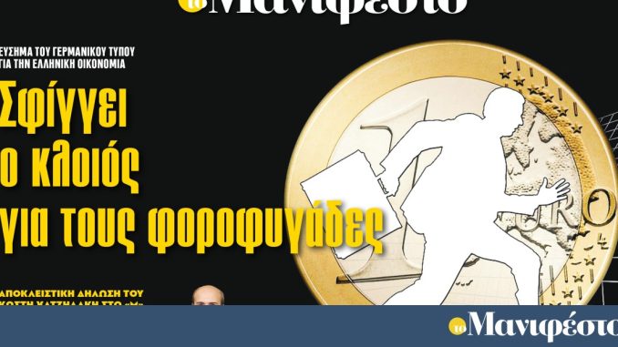 Διαβάστε στην εφημερίδα «το Μανιφέστο»: Σφίγγει ο κλοιός για τους φοροφυγάδες 03/10/2024 NewsRoom ΕΛΛΑΔΑ 0 Διαβάστε την Πέμπτη (03/10) στην εφημερίδα «το Μανιφέστο» Πηγή fantomas.gr