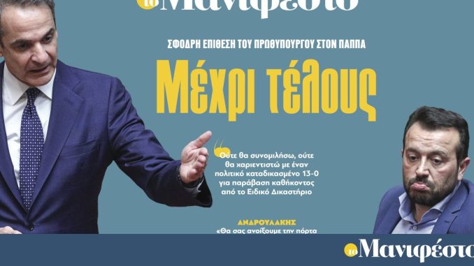 Διαβάστε στην εφημερίδα «το Μανιφέστο»: Μέχρι τέλους 24/10/2024 NewsRoom ΕΛΛΑΔΑ 0 Διαβάστε την Πέμπτη (24/10) στην εφημερίδα «το Μανιφέστο» Πηγή fantomas.gr