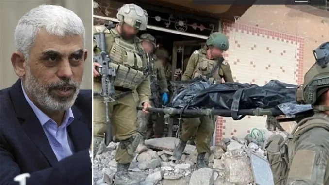 Στο μεταξύ, φωτογραφία που διαδόθηκε στο ίντερνετ, δείχνει στρατιώτες των IDF να μεταφέρουν σορό, που πιστεύεται ότι είναι ο ηγέτης της Χαμάς, από το κτίριο στο οποίο σκοτώθηκε στην πόλη Ράφα της νότιας Γάζας.