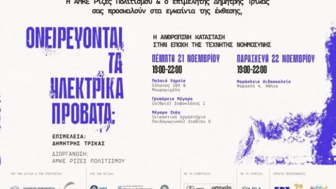 Η εικαστική έκθεση «Ονειρεύονται τα ηλεκτρικά πρόβατα; Η Ανθρώπινη κατάσταση στην εποχή της Τεχνητής Νοημοσύνης» θα εξελιχθεί σε τέσσερις χώρους του κέντρου της Αθήνας: το Παλαιό Χημείο, το Μαράσλειο Διδασκαλείο, το Μέγαρο Στάη και το Γρυπάρειο Μέγαρο. Η εικαστική έκθεση «Ονειρεύονται τα ηλεκτρικά πρόβατα; Η Ανθρώπινη κατάσταση στην εποχή της Τεχνητής Νοημοσύνης» φιλοξενεί τα έργα […]