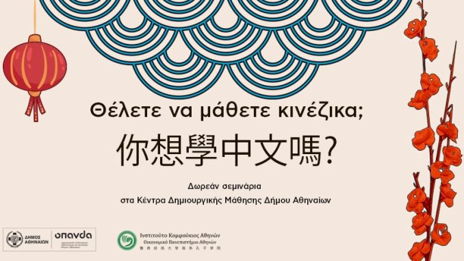 Δωρεάν σεμινάρια εκμάθησης κινεζικής γλώσσας στα Κέντρα Δημιουργικής Μάθησης Αλεξάνδρας και Ευελπίδων Οι εγγραφές άνοιξαν! Μία ακόμη πρόταση για την εποικοδομητική αξιοποίηση του ελεύθερου χρόνου των δημοτών στις κυψέλες πολιτισμού στις γειτονιές της Αθήνας, προσφέρει ο Δήμος Αθηναίων, διοργανώνοντας σεμινάρια εκμάθησης κινεζικής γλώσσας. Τα προγράμματα θα πραγματοποιούνται, με δωρεάν συμμετοχή, στα Κέντρα Δημιουργικής Μάθησης Λεωφόρου […]