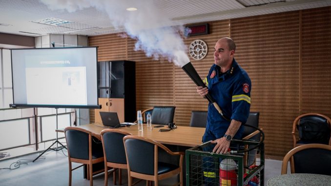 Όπως εξήγησε μάλιστα με βάση τα στοιχεία στην Ελλάδα η δεύτερη αιτία βίαιου θανάτου εν καιρώ ειρήνης είναι η πυρκαγιά καταδεικνύοντας με αυτόν τον τρόπο πόσο αναγκαίο είναι σε μια δημόσια υπηρεσίας όπως το εφετείο της Αθήνας όπου σε καθημερινή βάση εισέρχονται περίπου τρεις με πέντε χιλιάδες πολίτες και εργάζονται περισσότεροι από πεντακόσιους δικαστές και δικαστικούς υπαλλήλους είναι χρήσιμο να υπάρχει η αναγκαία πυροπροστασία αλλά και η γνώση για την αντιμετώπιση ενδεχομενμοθβτετοαου κινδύνου.