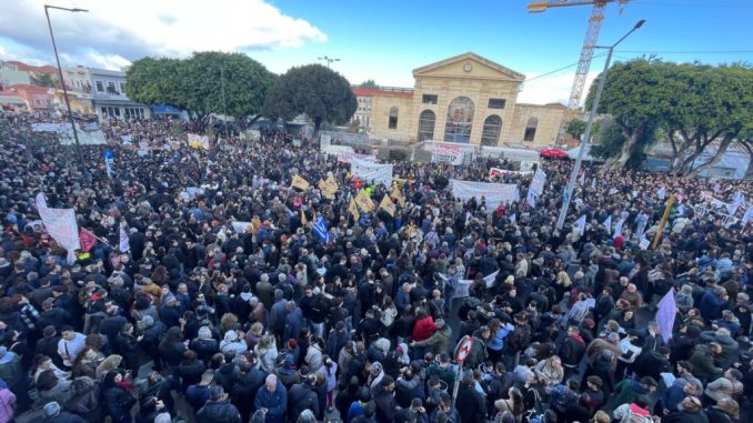 Με μια από τις μαζικότερες συγκεντρώσεις, κατακλύστηκε με χιλιάδες πολιτών το κέντρο της πόλης των Χανίων, σήμερα με αφορμή τη συμπλήρωση δύο ετών από́ την Τραγωδία – έγκλημα των Τεμπών. Χιλιάδες κόσμου, κάθε ηλικίας μικροί μαθητές, γονείς με παιδιά, συνταξιούχοι και φοιτητές φωνάζουν συνθήματα για «δικαιοσύνη, αλήθεια και εναντίωση στη συγκάλυψη». Δεκάδες είναι τα πανό […]