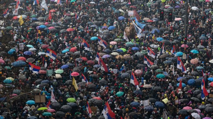 Κατά κύματα χιλιάδες άνθρωποι διαδηλώνουν στο Βελιγράδι από το μεσημέρι σε μία ογκώδη εκδήλωση διαμαρτυρίας έπειτα από μήνες διαδηλώσεων κατά της διαφθοράς με κινητήρια δύναμη τους σέρβους φοιτητές.