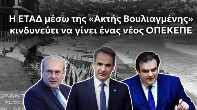Καλούμε την κυβέρνηση να λάβει τα απαιτούμενα μέτρα που να ενισχύουν την διαφάνεια και την αμεροληψία στην διαγωνιστική διαδικασία για την μακροχρόνια μίσθωση του περίφημου ακινήτου της «Ακτής Βουλιαγμένης», αλλά και δεκάδων άλλων ακινήτων της ΕΤΑΔ. Αν δεν υπάρξουν οι απαιτούμενες παρεμβάσεις, πιθανόν να υπάρξει ένας νέος ΟΠΕΚΕΠΕ με το όνομα ΕΤΑΔ, με ότι συνεπάγεται αυτό για το κύρος της χώρας μας.