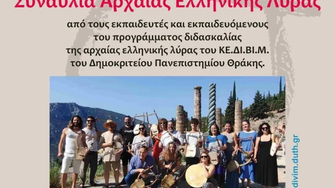 Η Αρχαία Ελληνική Επτάχορδη Λύρα στο Αρχαιολογικό Μουσείο Πειραιά και στους Δελφούς μετά από 1600 χρόνια σιωπής. Το Πρώτο Επίσημο Πρόγραμμα Διδασκαλίας της Αρχαίας Ελληνικής Λύρας του Κ.Ε.ΔΙ.ΒΙ.Μ. του Δημοκρίτειου Πανεπιστήμιου Θράκης κλείνει με μια συναυλία στην οποία συμμετέχουν εκπαιδευτές και εκπαιδευόμενοι. Οι Λυριστές αποτελούμενοι από τους Νίκο Ξανθούλη, στην αρχαία λύρα και στη βάρβιτο, την […]