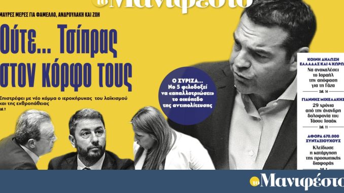 Διαβάστε στην εφημερίδα «το Μανιφέστο»: Ούτε… Τσίπρας στον κόρφο τους 11/08/2025 NewsRoom ΕΛΛΑΔΑ 0 Διαβάστε σήμερα Δευτέρα (11/08) στην εφημερίδα «το Μανιφέστο» Πηγή fantomas.gr