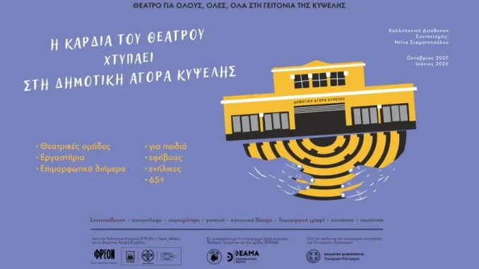 Το νέο πρόγραμμα «Η καρδιά του Θεάτρου χτυπάει στη Δημοτική Αγορά Κυψέλης» προσκαλεί την τοπική κοινότητα –και όχι μόνο– σε μια σειρά θεατρικών εργαστηρίων, ομάδων και δράσεων για όλες τις ηλικίες που στοχεύουν στην ενδυνάμωση της έκφρασης, της φαντασίας και της κοινωνικής συνοχής.